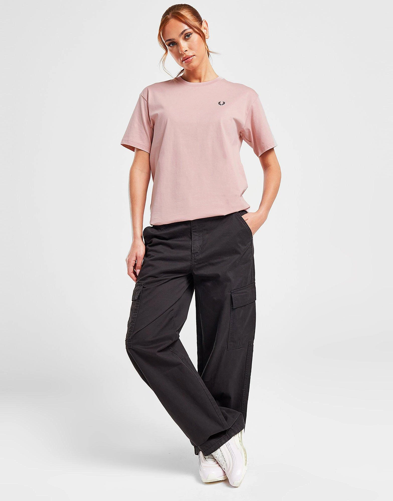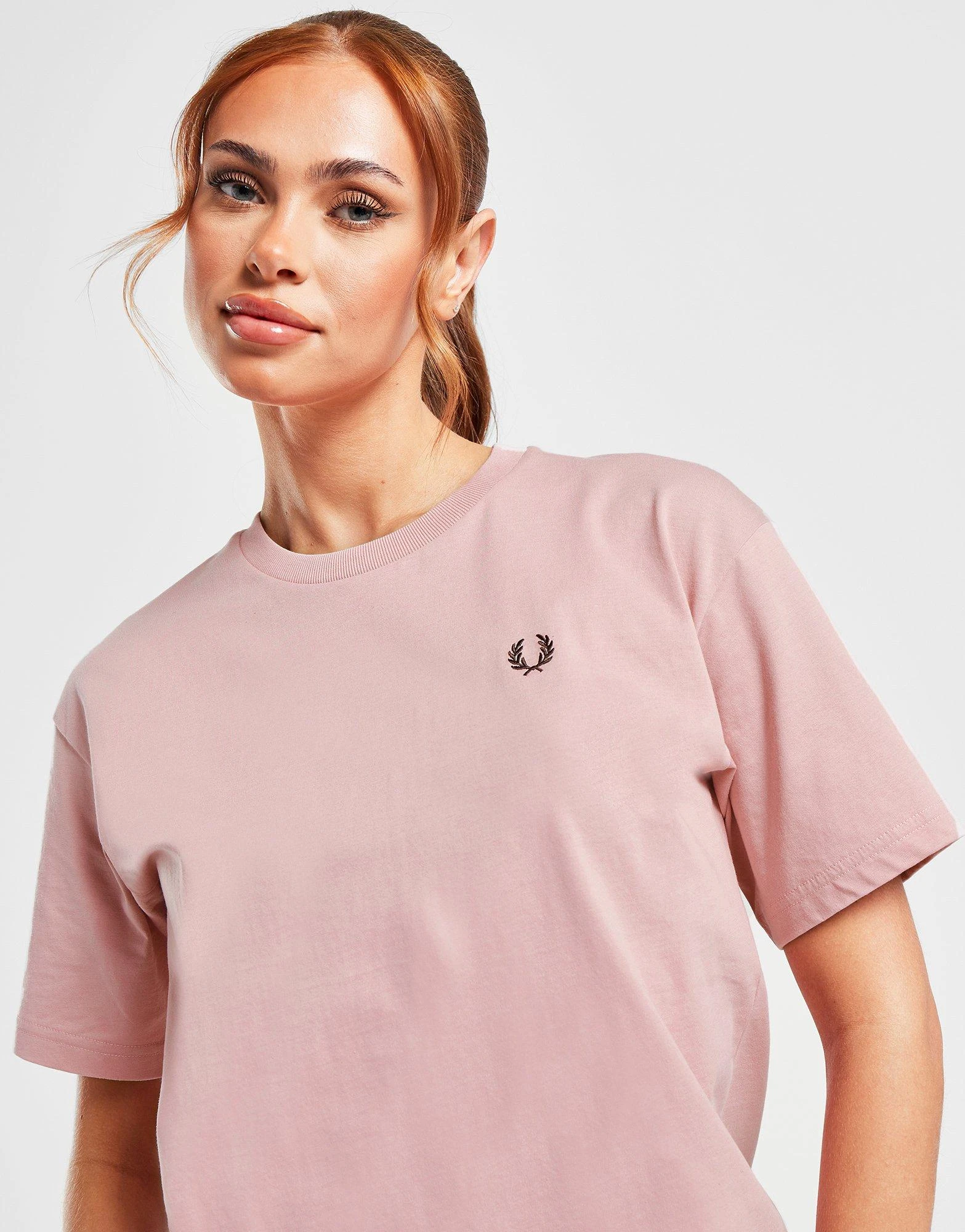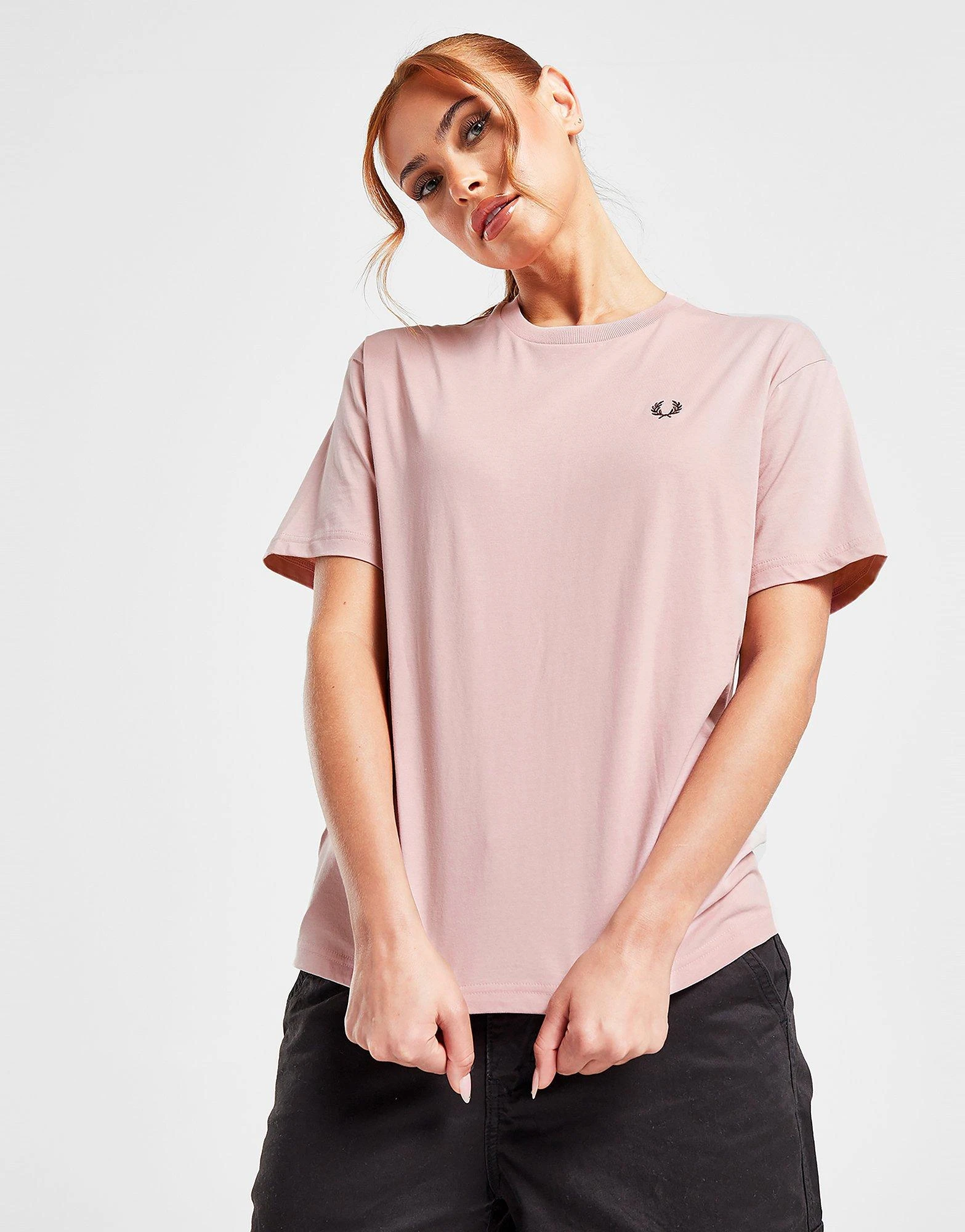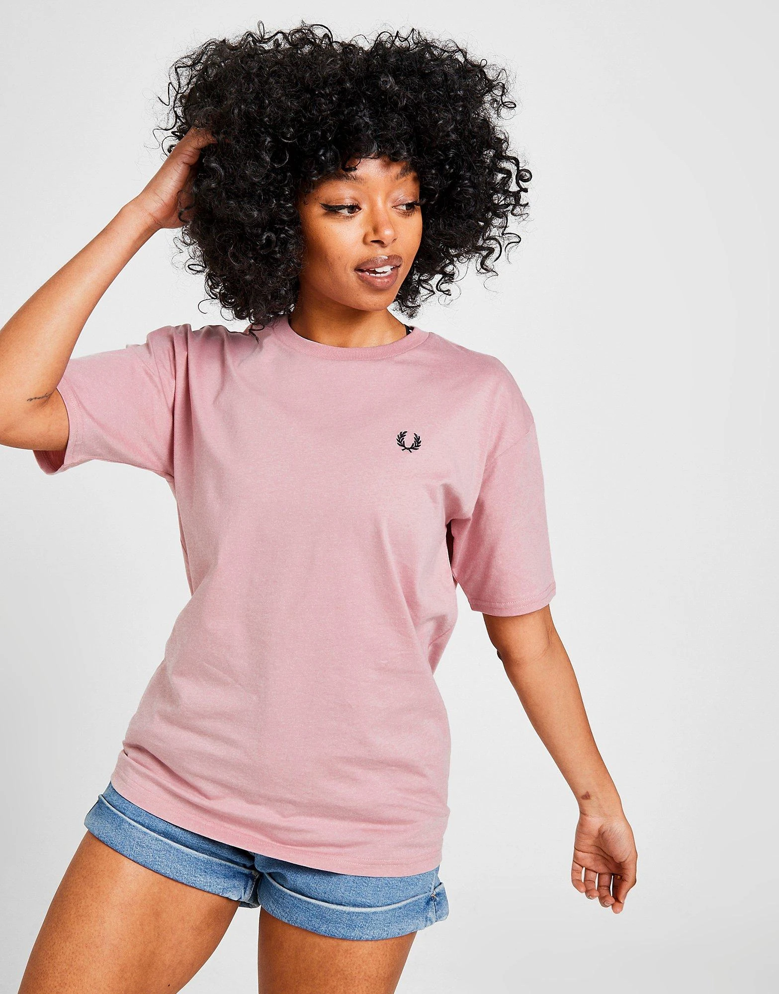 Level up you Summer look with classic style in this women’s Small Logo Ringer T-Shirt from Fred Perry. In a Pink colourway, this relaxed-fit crew neck tee features short sleeves and is made from durable cotton fabric for luxe comfort every time you step out. With dropped shoulders for a laidback feel, this top is finished up with an embroidered Laurel Wreath logo to the chest. Machine washable. | Our model is 5’6″ and wears a size 8.