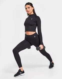 Achieve your goals with this women’s Core Crop 1/4 Zip Top from Gym King. Coming in a Black colourway, this slim fit top is made from a smooth and lightweight poly fabric that’s equipped with sweat-wicking tech for cool comfort. It features a mock top, a 1/4 zip fastening for custom airflow and long sleeves for added coverage. With a cropped hem for a slick style, it’s signed off with Gym King branding to the chest. Machine washable. | Our model is 5’9″ and wears a size 8.