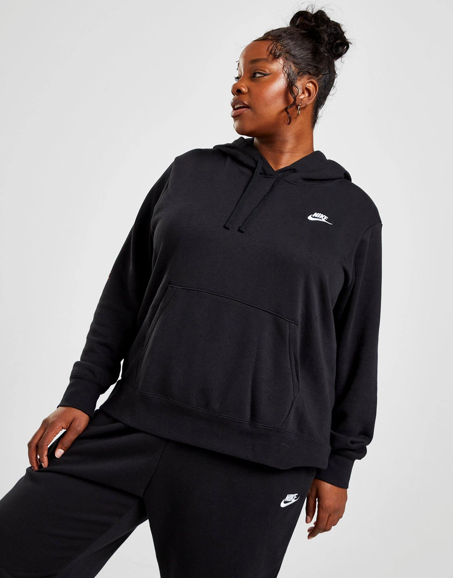 Cop a staple with this women’s Plus Size Club Overhead Hoodie from Nike. In a Black colourway, this relaxed fit hoodie is made from a super-soft and cosy cotton poly blended fabric to keep you comfy throughout the day. It features an adjustable for custom coverage, ribbed trims to elevate the fit and a kangaroo pocket for storage. Signed off with Nike branding to the chest. Machine washable. | Our model is 5’9″ and wears a size 1X.