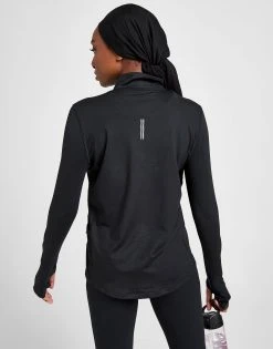 Take your outdoor workout next level with this women’s Running Element 1/4 Zip Track Top from Nike. Made from a durable poly-elastane blend, the top utilises Nike’s Dri-FIT technology which works to wick sweat away from your skin, keeping you cool and dry as you train. With a high rise collar and 1/4 zip for optional ventilation, the sleeves feature long ribbed cuffs and thumb holes for a comfortable wear. In a stealthy black colourway, the top is finished with a reflective white swoosh to the chest. Machine washable.