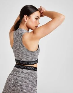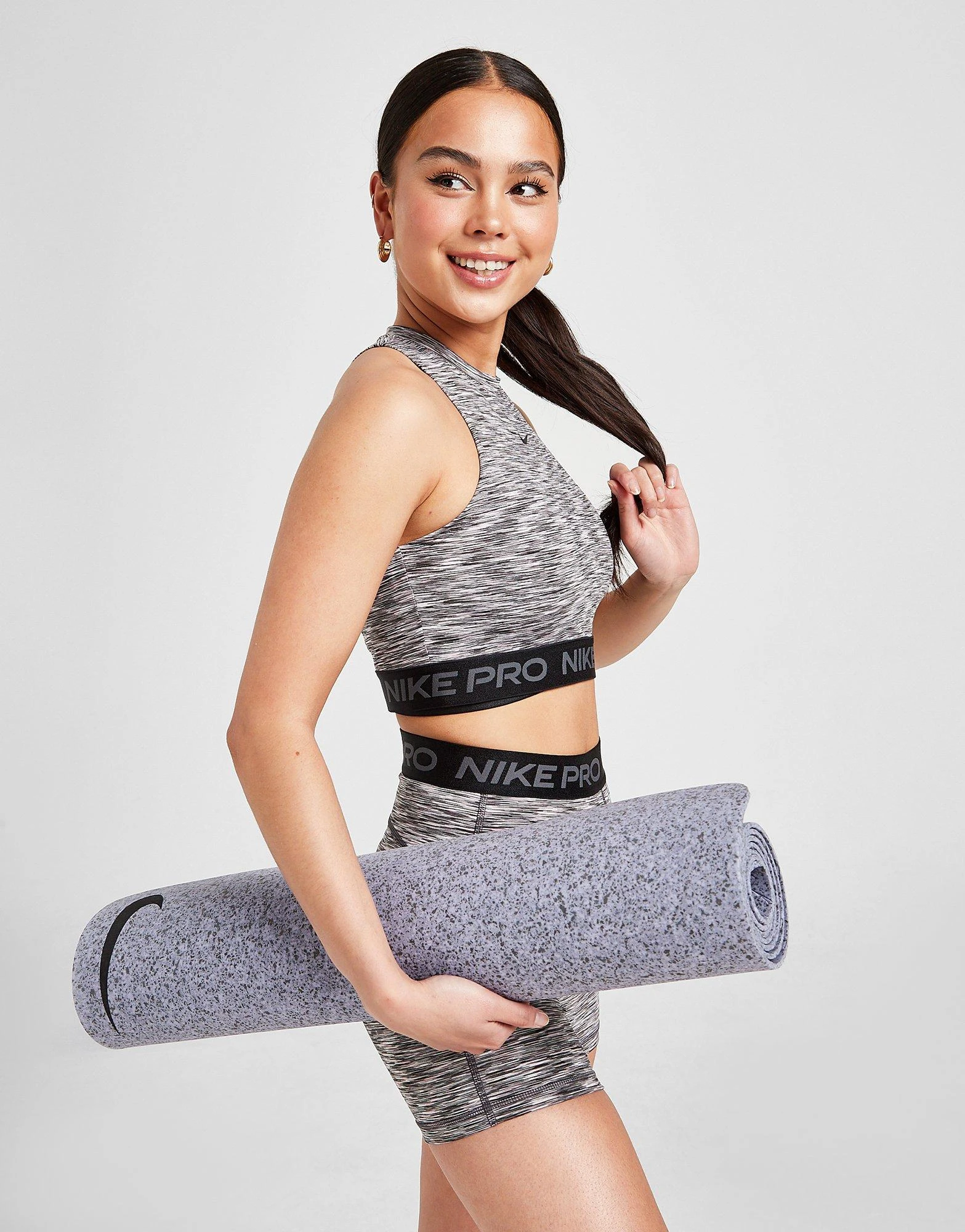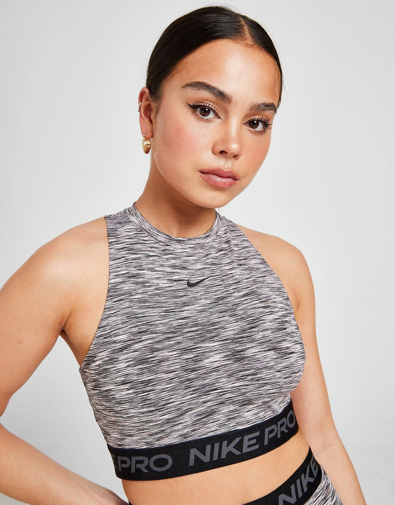 Whatever the workout, keep comfy in this women’s Training Pro Space Dye Tank Top from Nike. In a black and white colourway, this slim-fit tank is made from a stretchy poly fabric for breathability and freedom of movement. It uses Dri-FIT tech to wick away sweat, and features a racer back design. With a round neckline and a cropped hem, this fitness essential is finished up with a Swoosh logo and Nike Pro branding. Machine washable. | Our model is 5’6″ and wears a size small._