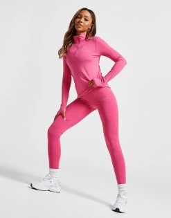 Add a vibrant look to your workouts with these women’s Core Tights from Pink Soda Sport. In a Mid Pink colourway, these tight-build training leggings are made from stretchy recycled poly fabric, sweat-wicking tech to keep you cool. Featuring a mid-rise, elasticated waistband for comfy support, they’re finished up with signature Pink Soda Sport branding to the thigh. Machine washable. | Our model is 5’8″ and wears a size 8.