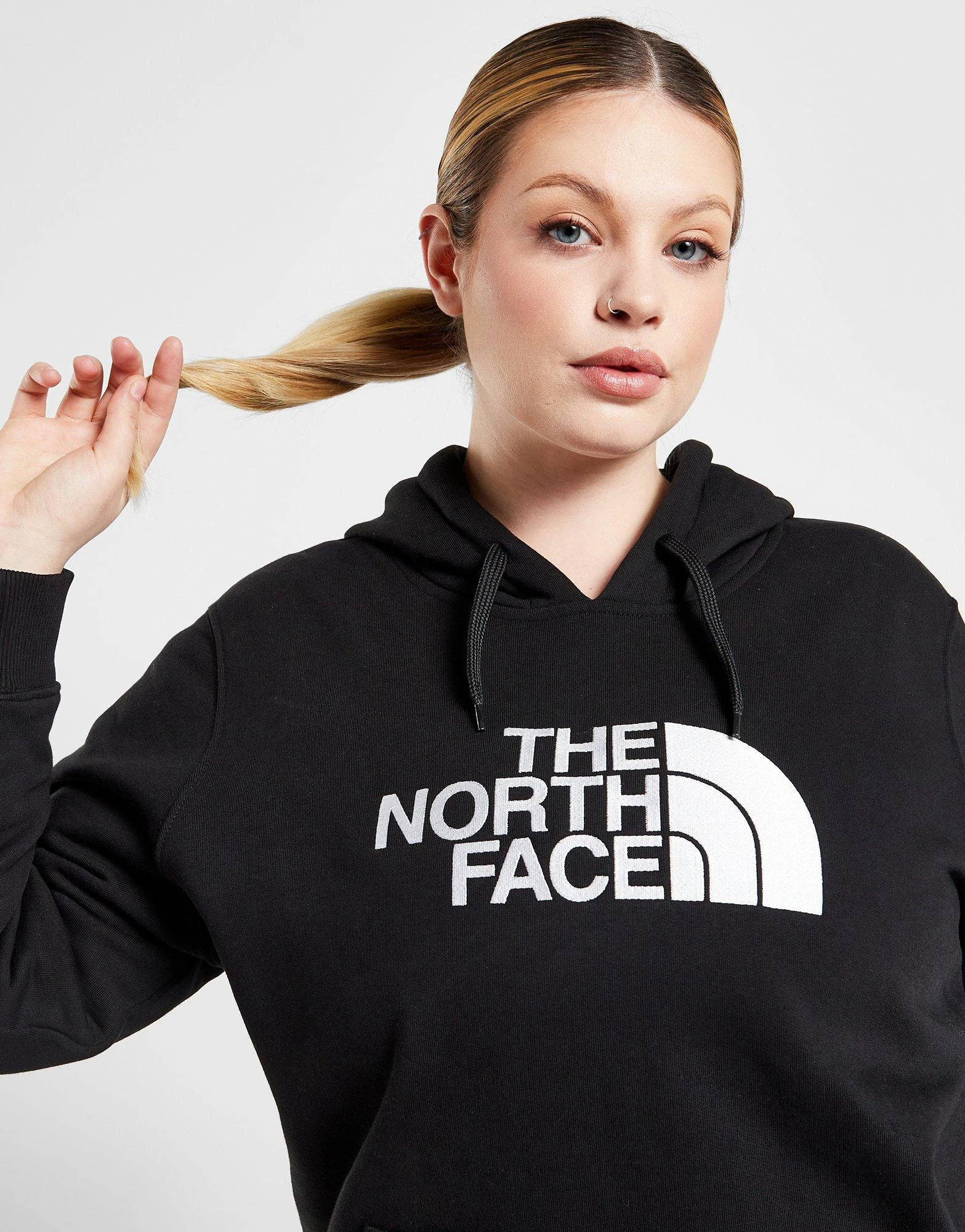 Cop a cosy ‘fit for urban adventures with this women’s Plus Size Drew Peak Hoodie from The North Face. In a black colourway, this relaxed-fit pullover features a drawcord-adjustable hood, semi-dropped shoulders and a kangaroo pocket for a snug feel. Made from ultra-soft cotton for fleecy comfort, this hoodie is finished up with ribbed trims and a contrasting TNF Simple Dome logo to the chest. Machine washable. | Our model is 5’9″ and wears a size XL.