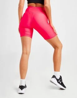 Gear up for the workout with these women’s Cycle Shorts from Under Armour. Landing in a Penta Pink colourway, these tight-fit shorts are cut from ultra-smooth, super-lightweight HeatGear poly with four-way stretch for supreme comfort. Crafted with sweat-wicking tech, they feature ergonomic flatlock seams, with a wide, high-rise waistband for a secure fit. With a built-in front pocket to stash the essentials, they’re finished up with classic UA branding above the hem. Machine washable. | Our model is 5’7″ and wears a size small.