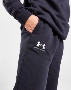 Level up your chill day rotation with these women’s Essential Joggers from Under Armour. In a Black colourway, these standard fit joggers are cut from soft, fleecey fabric for total comfort. They feature an elasticated waistband for a relaxed fit, with ribbed cuffs for a snug fit and side pockets for your essentials. Finished up with signature Under Armour branding to the leg. Machine washable | Our model is 5’6″ and wears a size small.